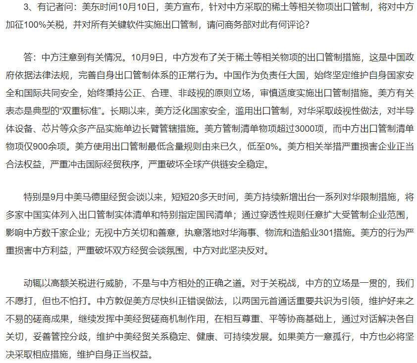 1.美方宣布将对中方加征100%关税,商务部回应